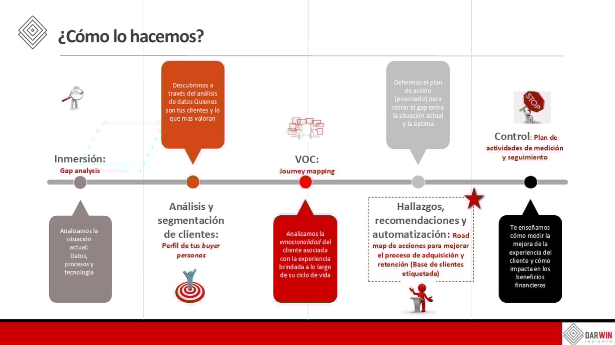 No te ofreceremos simples opiniones o sugerencias. En cambio, utilizaremos los datos de tu propio negocio para indicarte qué es lo que realmente se necesita. Te proporcionaremos instrucciones detalladas para identificar a tus clientes potenciales, cómo atraerlos y cómo convertirlos en tus principales promotores.